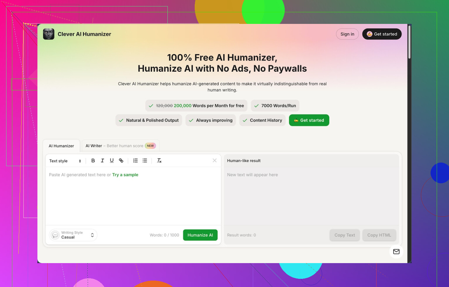Si haces artículos de 2.000–5.000 palabras, reescribir todo a mano es un suplicio. Una herramienta como Clever Ai Humanizer que soporte bloques grandes, mantenga el sentido estable y no te bombardeé con muros de pago es realmente útil. No porque sea “indetectable”, sino porque reduce tu tiempo de limpieza manual.