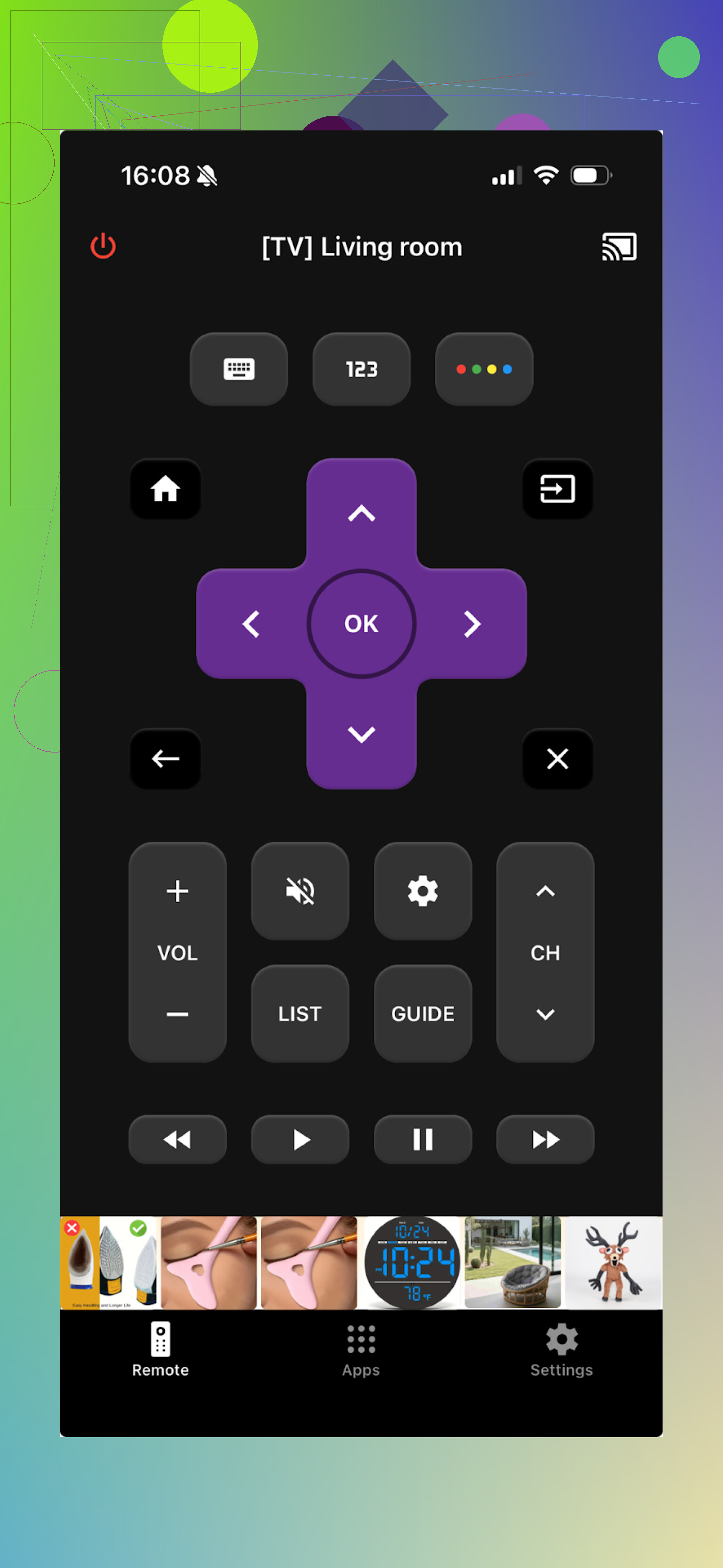 This one is more traditional. It basically turns your iPhone or iPad into a remote for multiple brands, including LG, Samsung, Sony, Vizio, Android TV, and others.