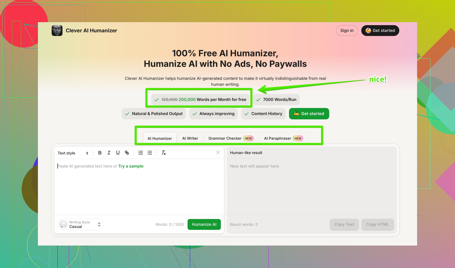 You asked about long‑term safety and quality. This is where I find Clever AI Humanizer a bit closer to the right priority: it tries to make AI text read smoother and less generic rather than only gunning for “100% human” screenshots.