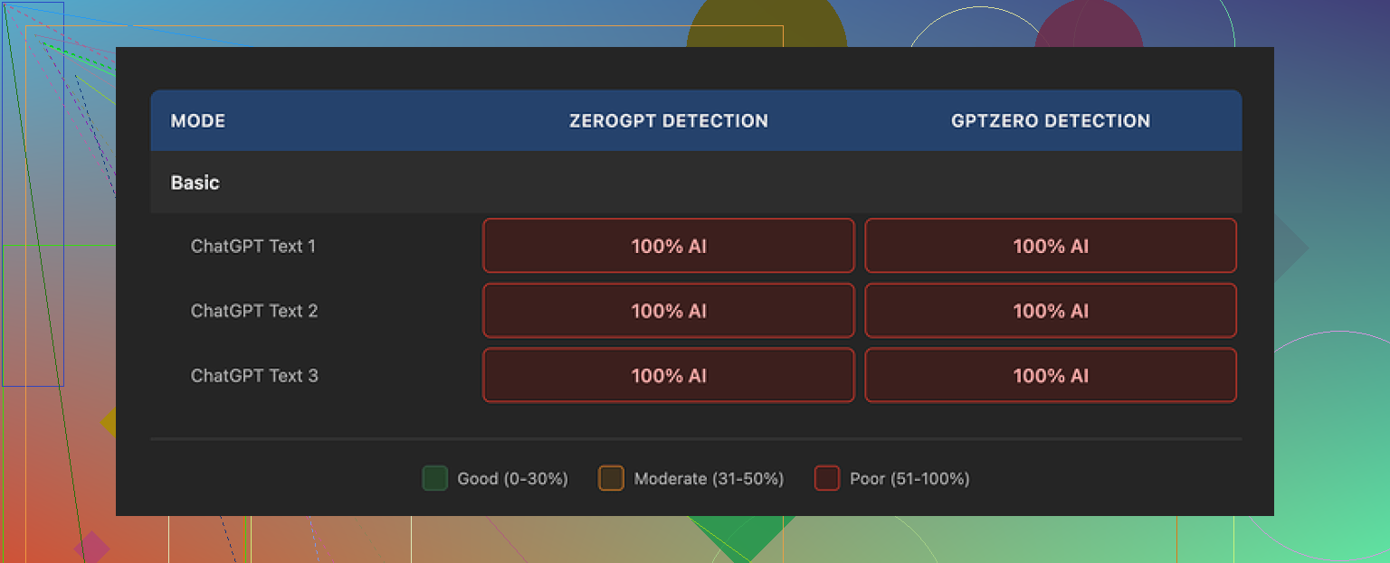 So, from a purely practical angle, if your target is to pass AI checks, this thing did nothing for me.