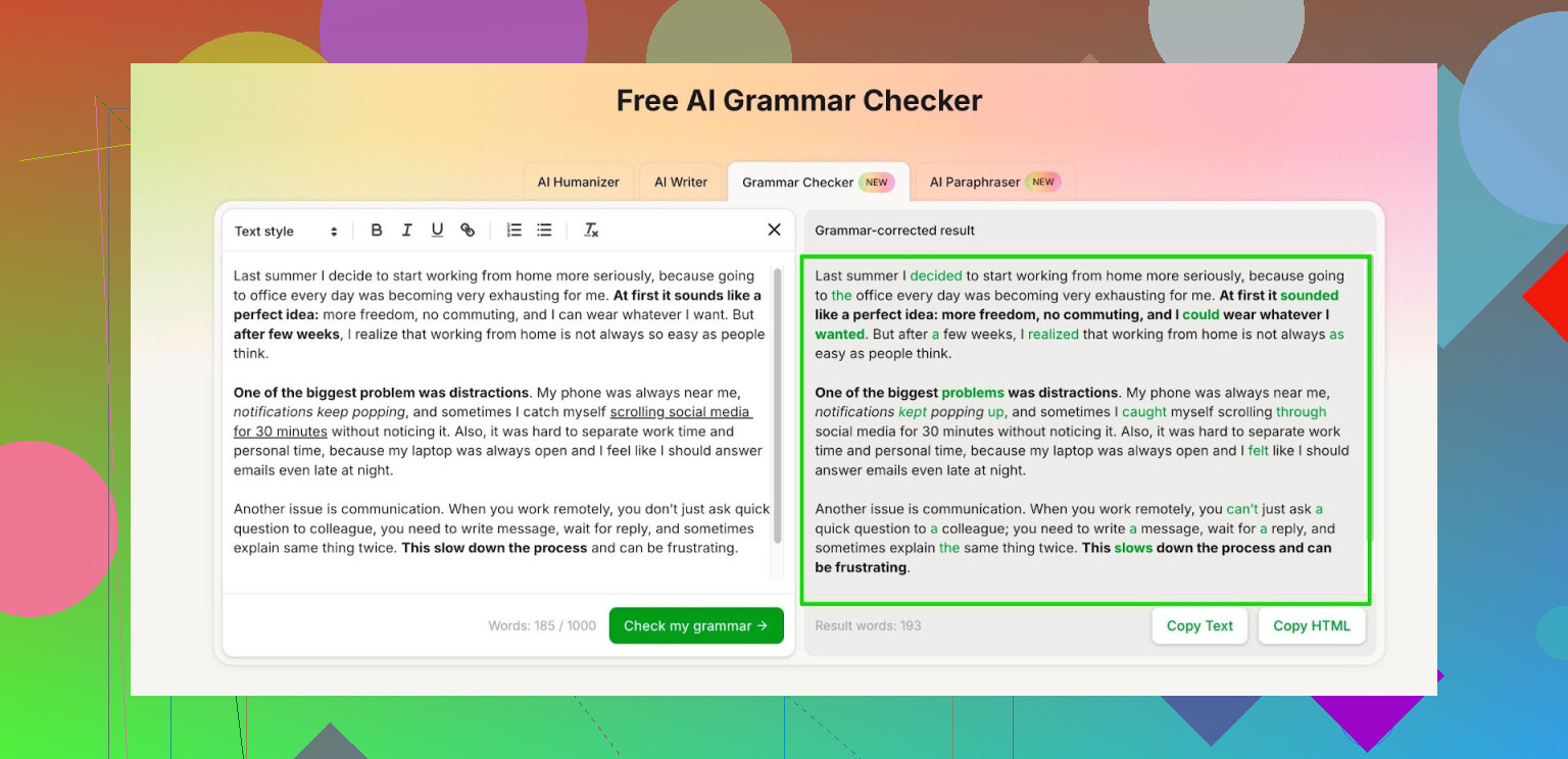 • Helpt je de basisfouten te herstellen voordat je de tekst naar Clever AI Humanizer stuurt.