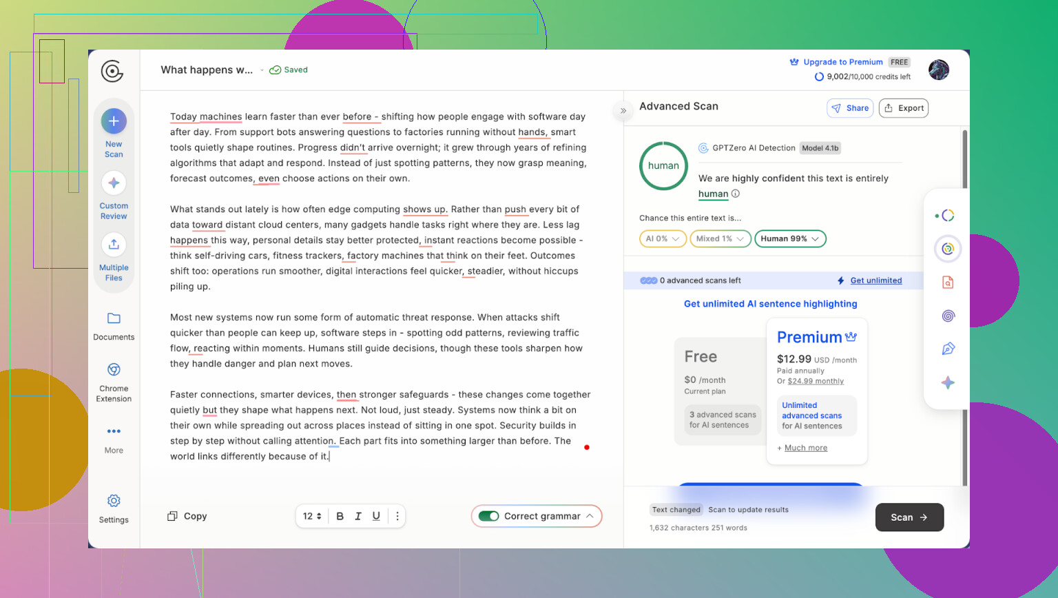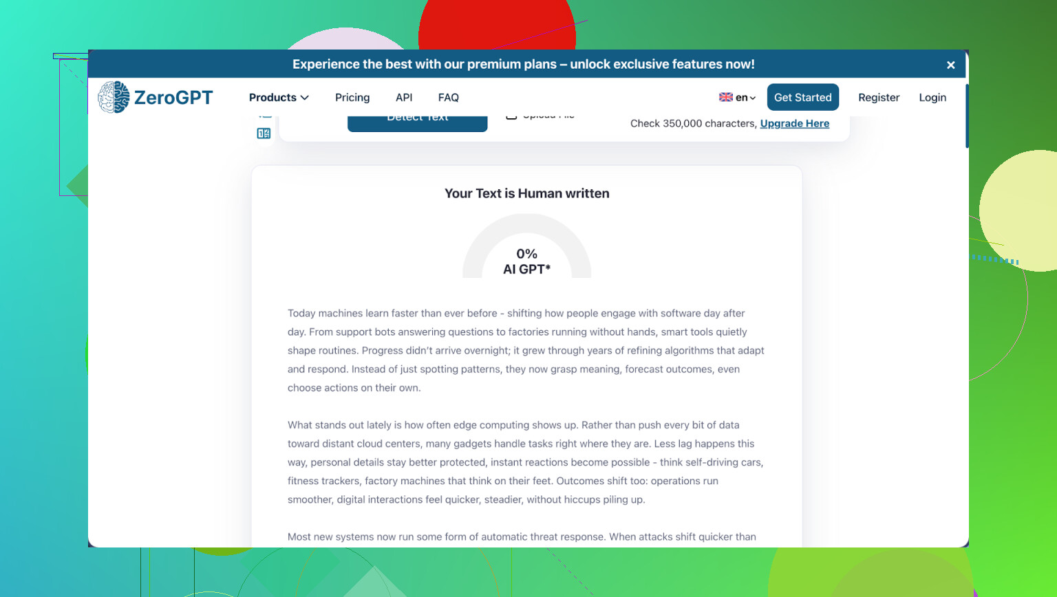 - Perfect scores on ZeroGPT in my tests with longer texts