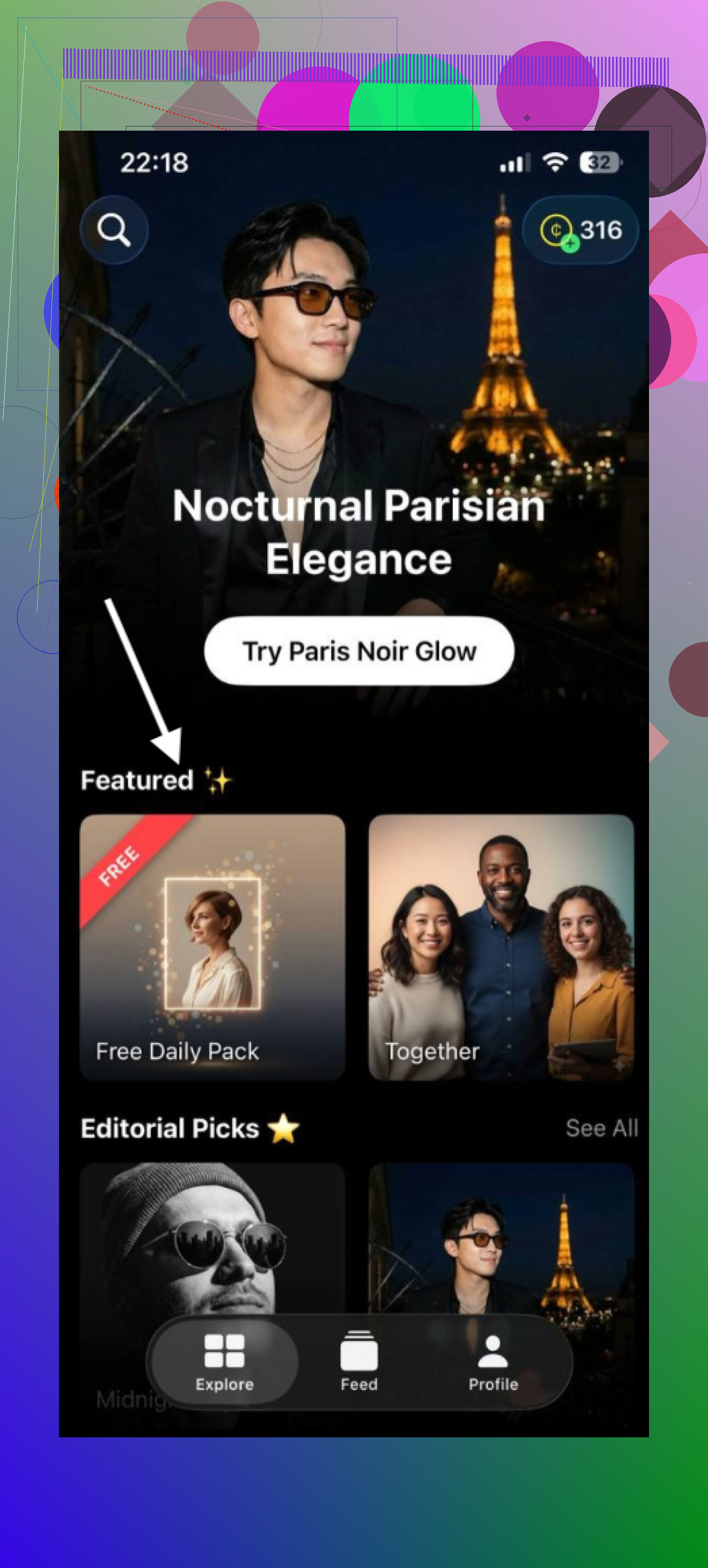 • Some free AI portrait tools built into the app.